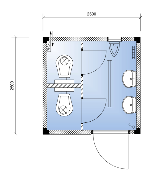 322 Basis+ Unit 2.5×2.5m, Sanitair unit